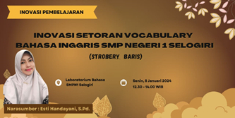 Kami dengan bangga mempersembahkan program pembiasaan bahasa Inggris “Strobery Baris” – sebuah inovasi pembelajaran yang dirancang untuk meningkatkan penguasaan kosakata siswa melalui metode menyenangkan berbasis kelompok dan teknologi digital. Program terstruktur ini menggabungkan lima tahap utama (perencanaan, persiapan, pelaksanaan, evaluasi via game edukasi, dan refleksi) untuk menciptakan lingkungan belajar aktif yang mendorong percaya diri berkomunikasi dalam bahasa Inggris sekaligus mengembangkan keterampilan kolaborasi. Sebagai wujud komitmen kami dalam menyiapkan generasi unggul yang kompetitif di era global, “Strobery Baris” menjadi solusi praktis untuk mengatasi tantangan pembelajaran bahasa asing secara kreatif dan terukur.